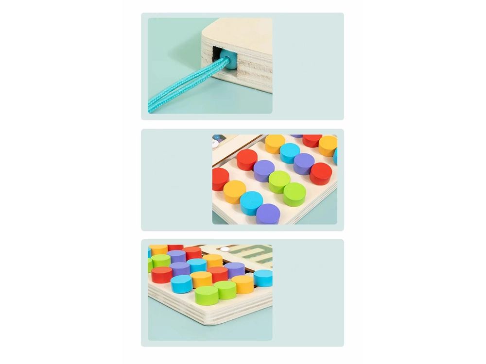 Дървената настолна игра има различни шарки за лесно усвояване на цветовете и координацията. Подкрепя креативността и концентрацията на децата.