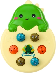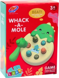 Играта за сръчност Whack-a-Mole във формата на сладък динозавър е чудесна за деца, които искат едновременно да се забавляват и да развиват уменията си. Целта е да се ударят цветните главички, които се показват от отвори, което изисква бърза реакция и координация. Благодарение на безопасното чукче, проектирано за малки ръце, играта е не само забавна, но и безопасна.