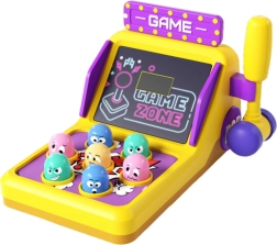 Играчката Whack-a-Mole е популярна игра на сръчност в модерен автомат, която очарова децата с интерактивния си дизайн. Задачата на децата е да удрят с чук цветните глави, излизащи от отворите, което тренира техните рефлекси и моторни умения. Големият, ефектен корпус в ретро стил на аркадни автомати привлича децата с визуалните си елементи и детайли.