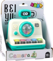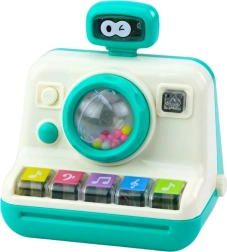 Мигащите светлини привличат вниманието и насърчават към взаимодействие. Играчката имитира фотоапарат и е лека и практична – идеална за малки ръце.