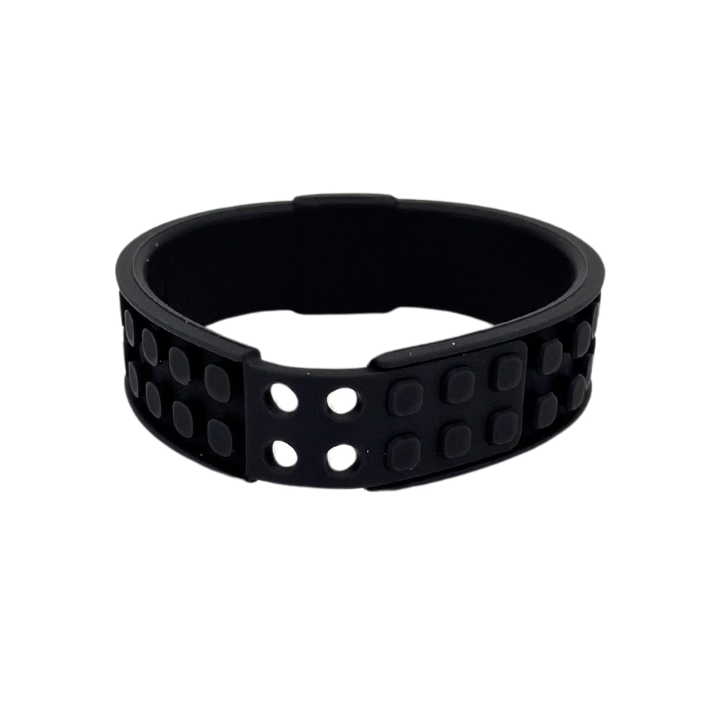 Регулируема силиконова гривна в черен цвят, идеална за деца и възрастни! С нея можете да създавате собствените си креативни дизайни с помощта на 44 точки за закрепване на пиксели.