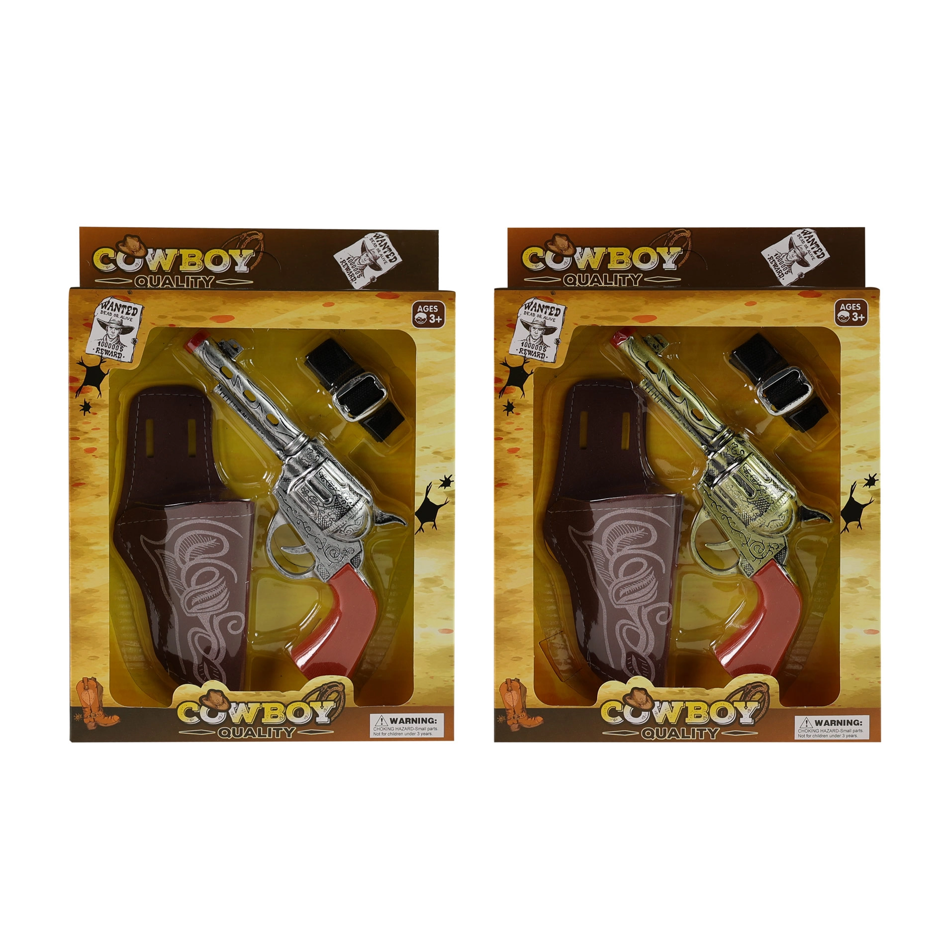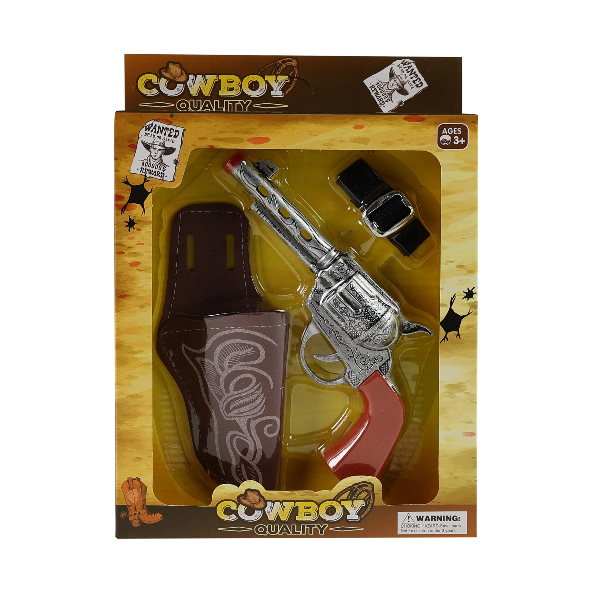Стани герой от Дивия запад с този удобен комплект за малки каубои! Включва пистолет със звукови ефекти, кобур и колан за закрепване.