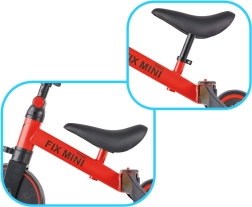 Trike Fix Mini предлага три режима на каране: колело за балансиране с три колела за най-малките, класическа триколка с педали на предното колело и тренировъчен режим със събрани задни колела за упражняване на равновесие преди преминаване към двуколесно колело. Благодарение на бързата смяна на конфигурацията ще адаптирате колелото към възрастта и уменията на детето за миг.