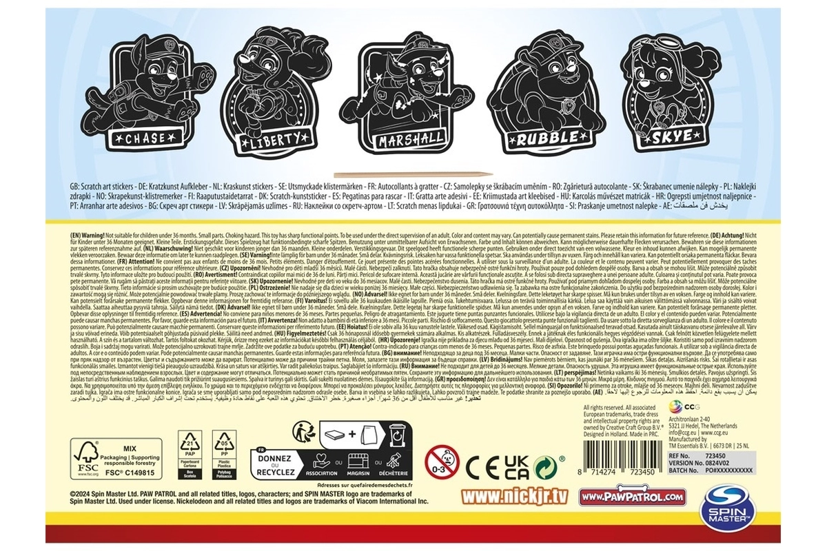 Създай своя собствена колекция стикери с мотиви от ПЕС ПАТРУЛ. Достатъчно е нежно да изстържеш черния слой и постепенно ще откриеш ярките цветове и детайлите на отделните герои. Готовите мотиви са самозалепващи, така че можеш веднага да ги използваш за украса на учебни принадлежности, подаръци или картички.