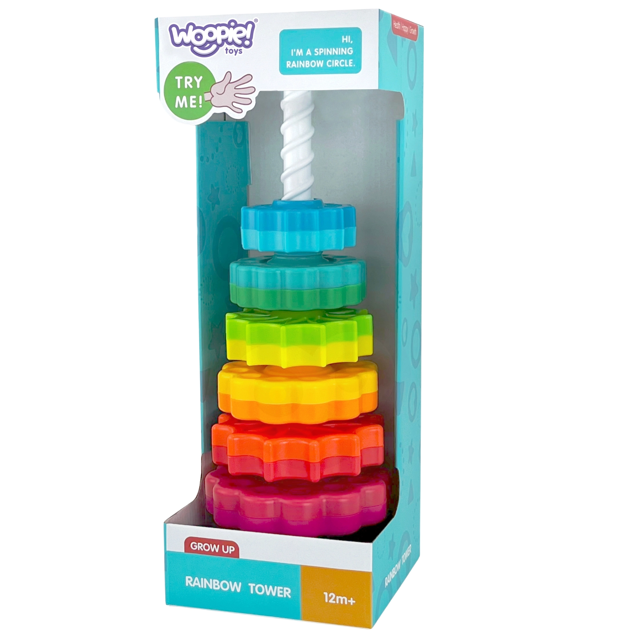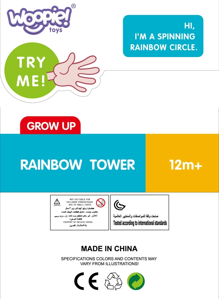Да забавлявате дете с часове? Това може играчката Извита кула от Woopie, която не само забавлява, но и учи. Създайте своя собствена цветна кула от шест двуцветни диска и наблюдавайте как всичко се превръща в магически форми.