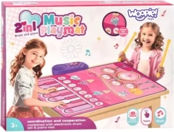 Открийте радостта от музиката с детската музикална постелка WOOPIE 2в1. Голямата мека повърхност съчетава клавиши на пиано и зона за барабани, така че децата могат да свирят с ръце, крака или включените палки. Благодарение на функцията за запис лесно ще съхранят първите си мелодии, а регулируемата сила на звука осигурява комфортна игра у дома и по време на път.