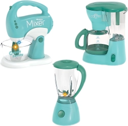 Благодарение на комбинацията от миксер, блендер и кухненски робот децата могат да разбъркват, разбиват и „миксират“ напитки като в истинска кухня. Комплектът е подходящ за деца от 3 години и е отличен избор за съвместна игра с приятели или родители.