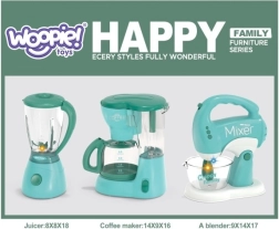 Комплектът WOOPIE 3в1 носи на децата автентично изживяване при готвене. Реалистичните форми, прозрачните съдове и леснодостъпните бутони насърчават подражанието на възрастните и развиват въображението. Всеки уред има светлинни и звукови ефекти, които правят играта завладяваща и интерактивна.
