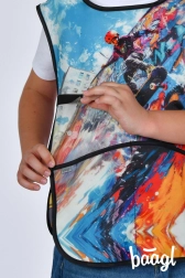 Добре обмисленият крой осигурява удобство при носене, а два практични джоба в долната част побират четки, моливи и други пособия. Отличен избор за час по изобразително изкуство, труд и техника, керамика или домашно творчество.