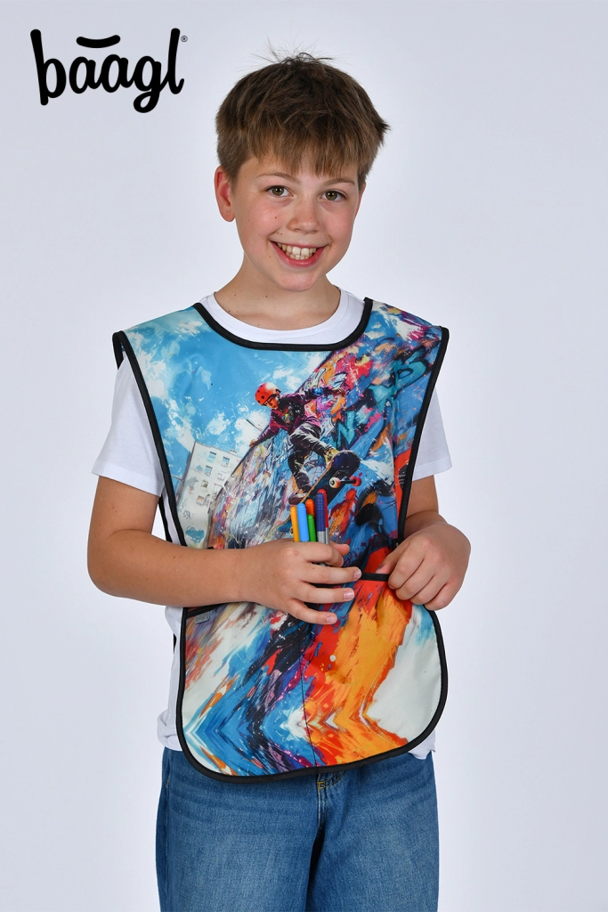 Търсите надеждна защита на дрехите за малките творци? Детската престилка Skatepark е идеален избор за училище и за свободното време. Благодарение на издръжливия и лесен за почистване материал се поддържа чиста и издържа дори на по‑интензивно творчество.