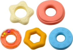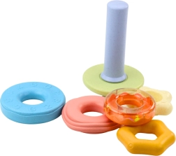 Всеки ринг има различна текстура, а един от тях е снабден с дрънкалка. Така играчката предоставя разнообразни звукови и сензорни стимули, които подпомагат развитието на възприятието и концентрацията. Всички части са изработени от безопасни, издръжливи материали без вредни вещества, напълно подходящи за най-малките потребители.