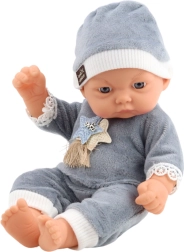 Красива бебе-кукла в мек сив пижамен комплект с шапчица и апликация звездичка е идеална за деца от 3 години. Благодарение на реалистичното личице, фините детайли и прецизно изработеното облекло, куклата приканва към приятна и естествена игра.