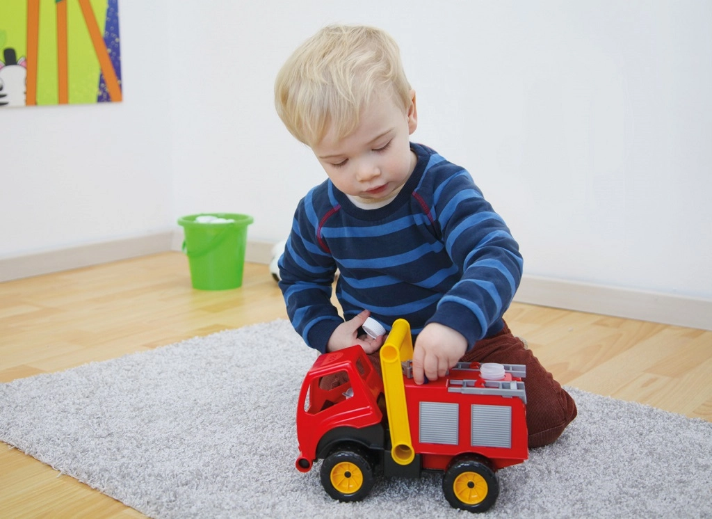 Отваряемата кабина с фигурка на пожарникар подпомага развитието на въображението и фината моторика. Играчката отговаря на строгите стандарти за безопасност на ЕС и е подходяща за деца от 3 години.
