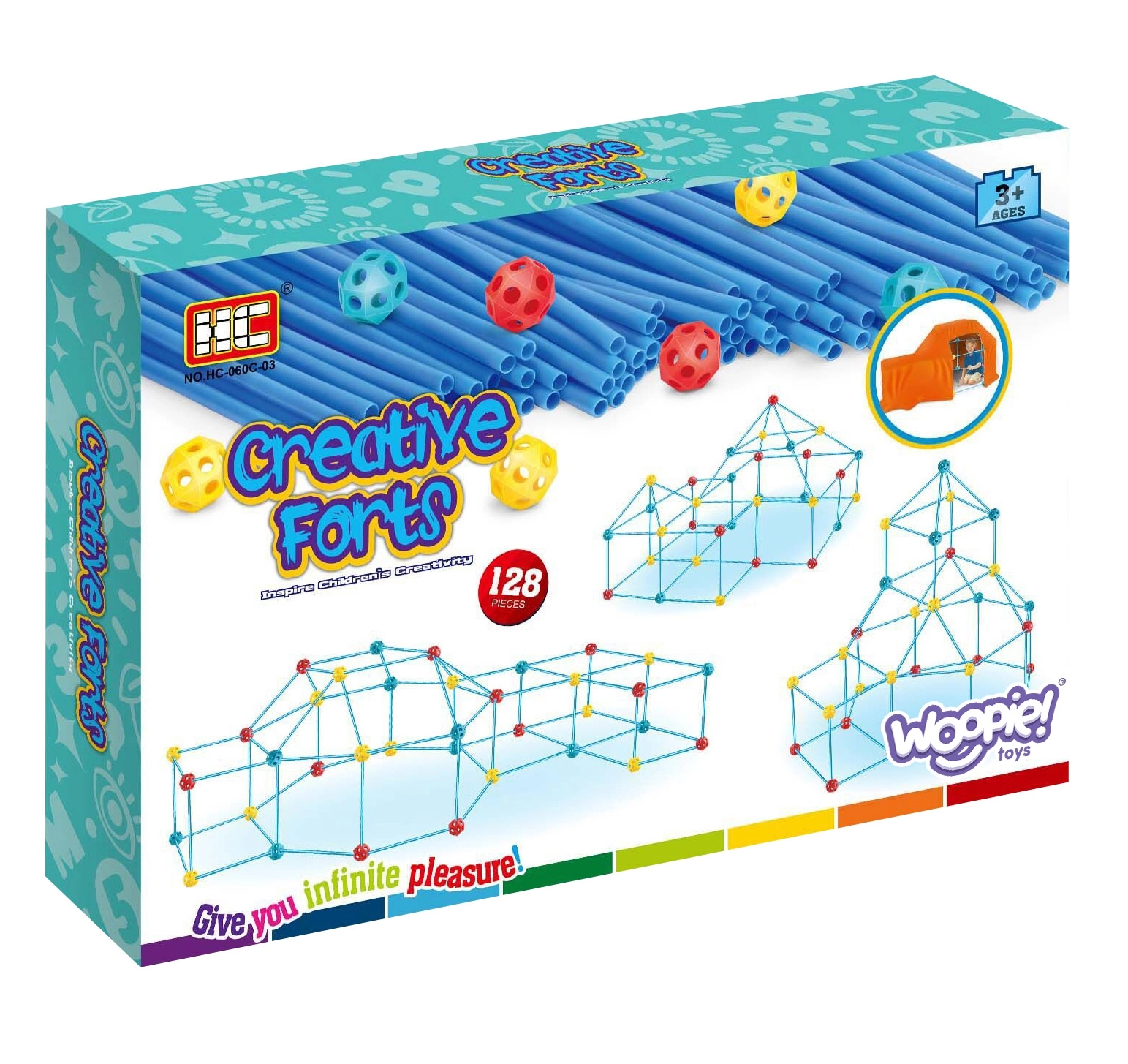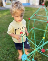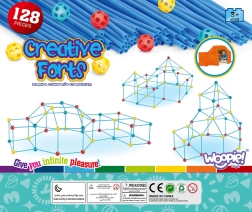 Комплектът е идеален за развитие на творческите умения на вашето дете. Съдържа общо 128 елемента, които позволяват да се изграждат различни пространствени конструкции, включително палатка.