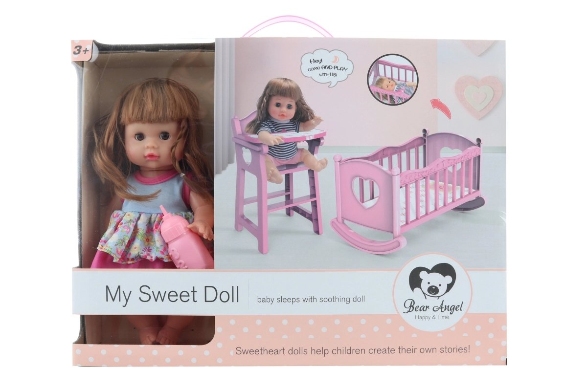 В комплекта ще откриете и люлка, която перфектно допълва цялостното изживяване. Куклата е оборудвана с батерии, които са включени в комплекта.