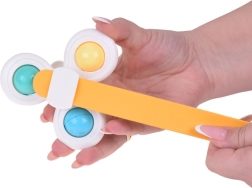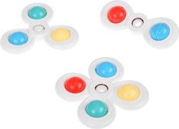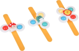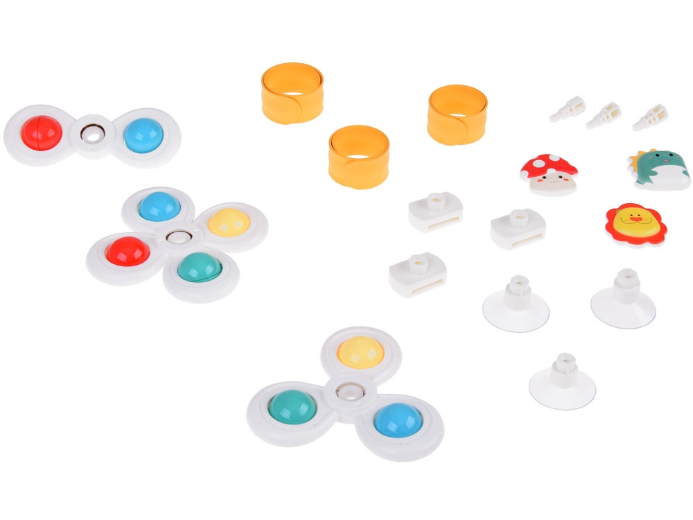Благодарение на специалните въртящи се пръстени спинърът развива фината моторика на вашето дете и му предоставя безкрайно забавление. Спинърът е наличен в 3 броя, всеки със собствена вендуза и лента, и носи пъстри и забавни моменти.