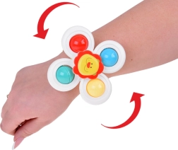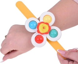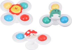 Подобрете времето за къпане на децата си с цветни спинър играчки, които включват весели мотиви на лъвче, гъбка и динозавър. Спинърът може лесно да се закрепя върху различни повърхности, така че детето да се забавлява дори по време на хранене или пътуване с кола.