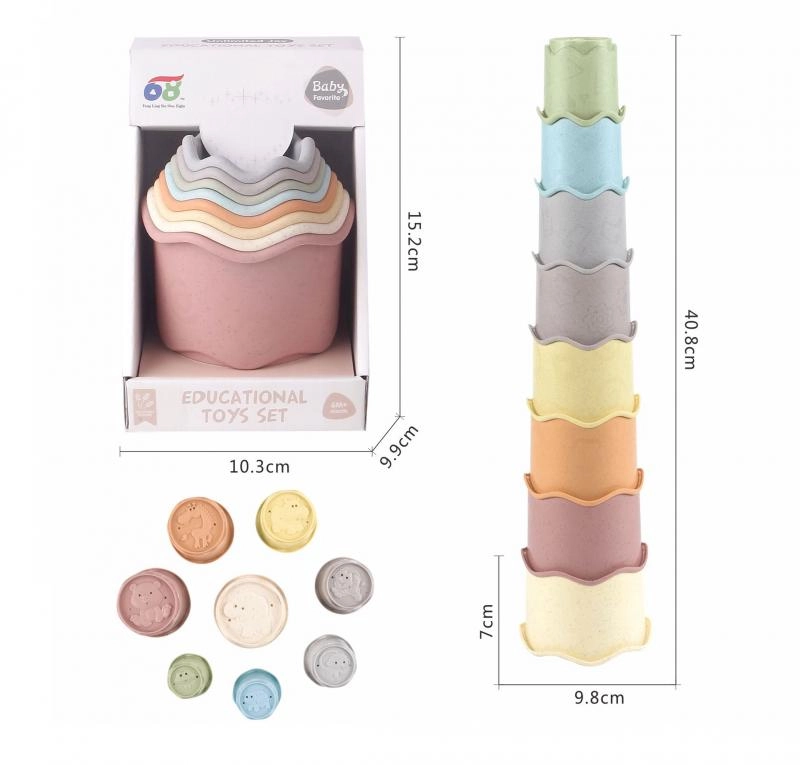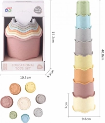 Популярната кула от 8 купички е идеална играчка за най-малките. Благодарение на универсалното си приложение децата ще я използват по време на къпане, в пясъка и при игра у дома. Подреждането и вгнездяването подпомагат координацията око–ръка и развитието на пространственото въображение.