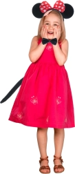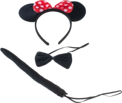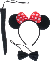 Този пълен комплект костюм на мишка е идеален за карнавал, Хелоуин, училищни тържества и игра у дома. К иконичните уши с червена панделка на точки пасват черната папионка и опашката, така че преобличането е готово за няколко секунди.