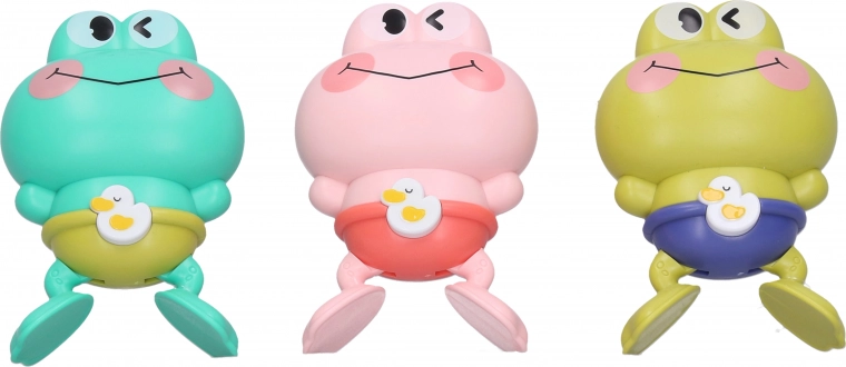 Тази плаваща жаба е идеална за развлечение на вашето дете по време на баня. Отличава се с ярки цветове и е налична в три варианта: жълт, зелен и розов.