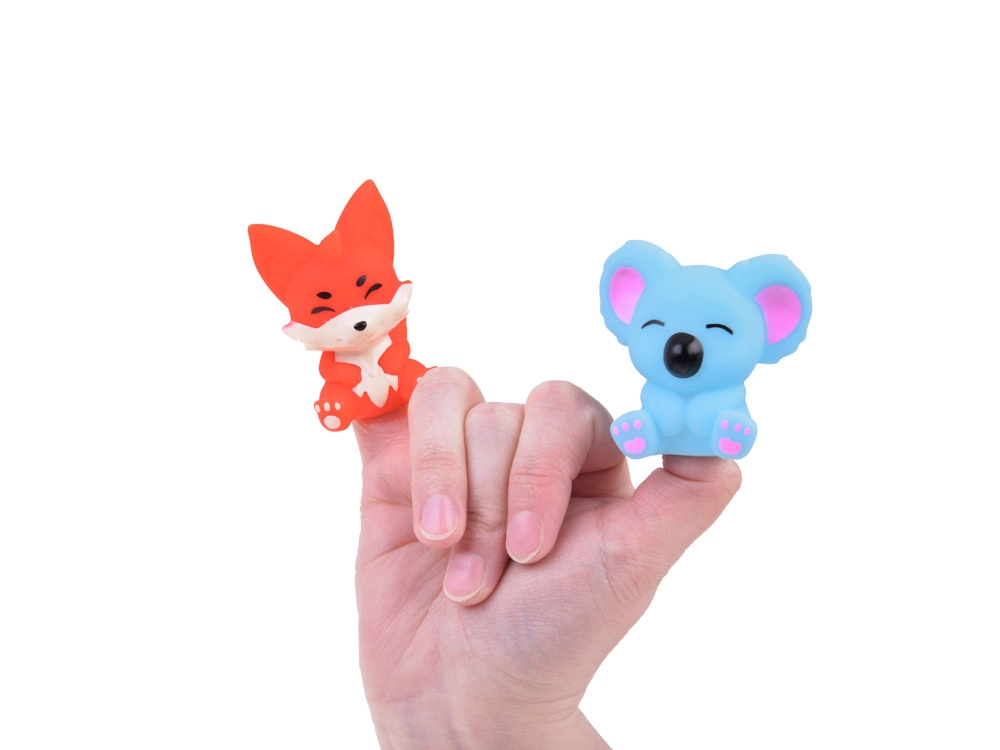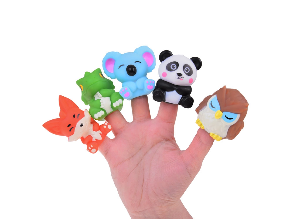 Тези гумени фигурки представят различни животни, които със своите ярки цветове веднага впечатляват. Всяка фигурка има отвор, който позволява да се постави на пръст. Така деца и родители могат да влизат в различни роли, да оживяват животните чрез диалози, истории и малки сценки. Тази игра е чудесна възможност за развитие на въображението, креативността и езиковите умения.