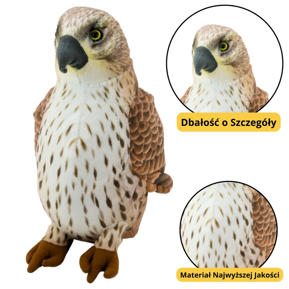 Плюшеният скален сокол има ергономична форма, лесно се държи в детски ръце и е идеален за игра, прегръщане или за път. Служи отлично и като образователен инструмент за запознаване с хищните птици или като декорация за детска стая. Това е чудесен подарък за млади любители на дивата природа.