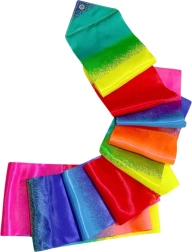Изживейте магията на танца и движението с нашата цветна гимнастическа лента, проектирана да създава визуално зашеметяващи ефекти. Благодарение на дължината от 205 см и ширината 5 см лентата се движи красиво във въздуха и привлича вниманието с дъговите си цветове.
