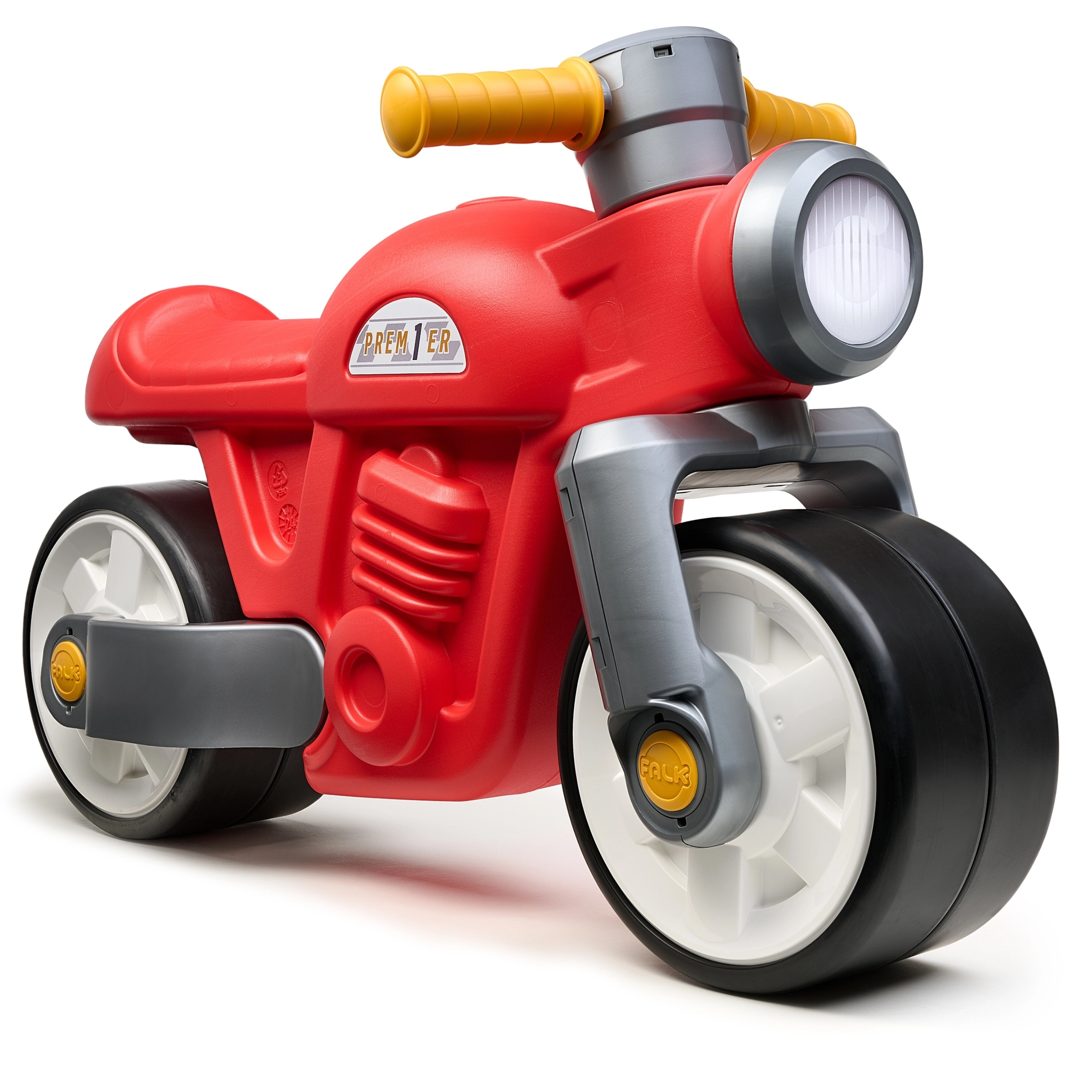 Еластомерната повърхност на мотора е по-устойчива на надраскване, което гарантира издръжливост и дълъг живот на играчката. Благодарение на широките си колела осигурява усещане за сигурност и помага на малките деца да тренират равновесието и моторните умения.