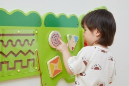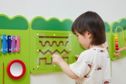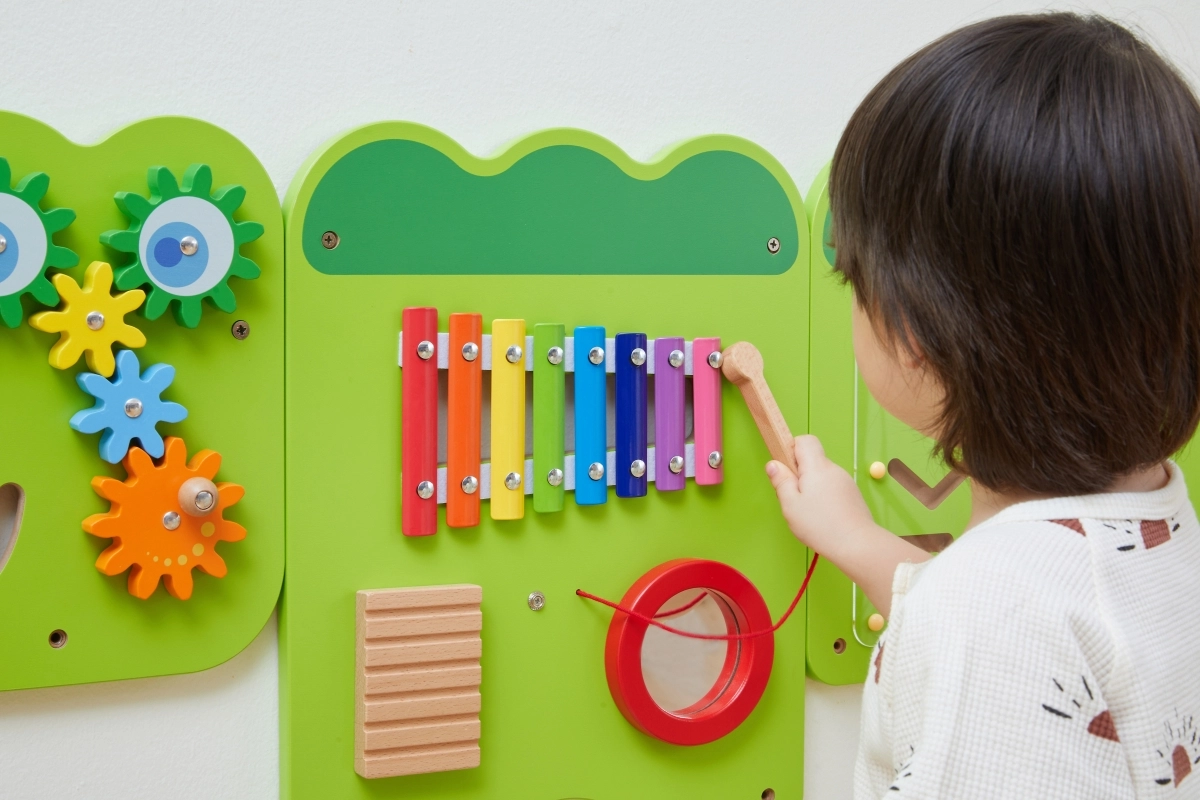 Всеки панел предлага различен тип активност – от свирене на ксилофон, през въртене на зъбни колела и шарени дискове, до водене на мъниста и преместване на елементи в лабиринти. Децата естествено упражняват координацията, захвата, търпението и решаването на проблеми. Монтажът на стена пести място и позволява едновременно да играят повече деца.