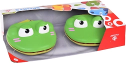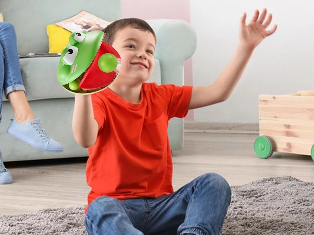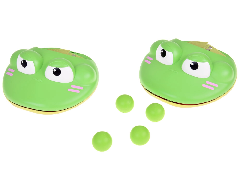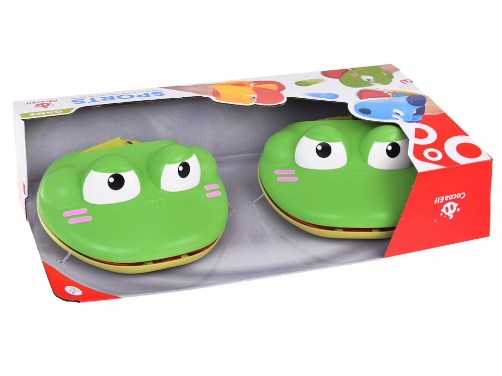 Комплектът съдържа два умно оформени катапулта, които лесно се приспособяват към размера на ръката ви благодарение на регулируеми велкро каишки. Всеки катапулт е проектиран като сладка жаба, която благодарение на конструкцията си позволява лесно управление.