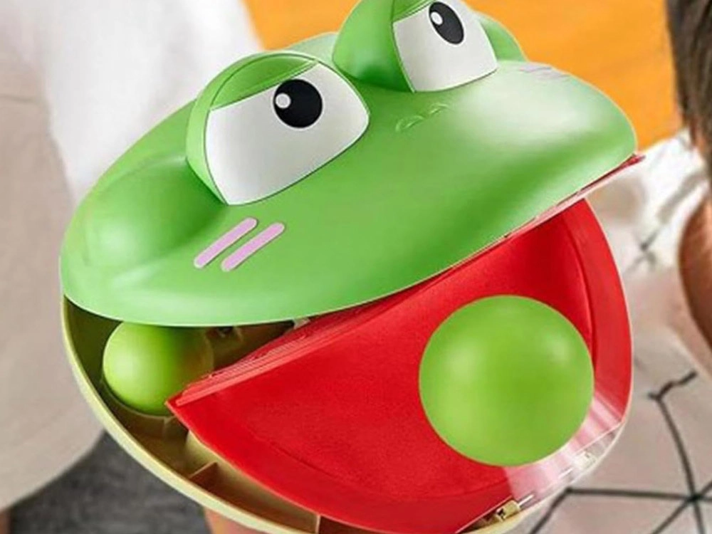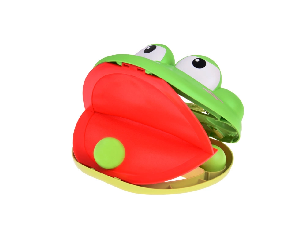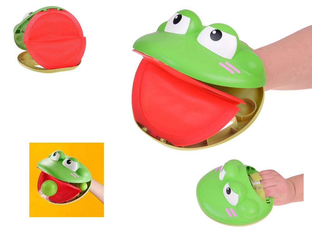 - Поставете едно топче в устата на жабата, все едно е върху езика.