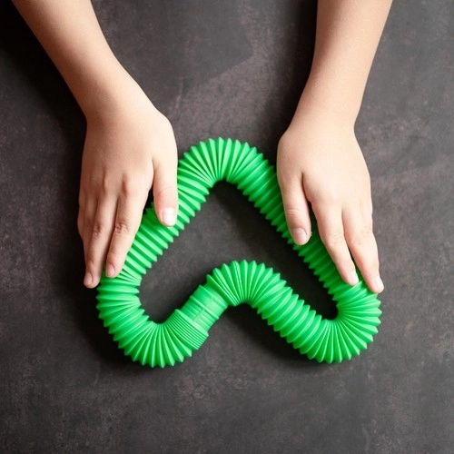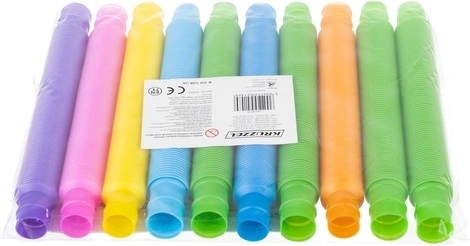 Тези тръбички не само се свързват, но могат и да се разтягат, а сгъването и разгъването издава приятен звук. Това ги прави перфектни играчки за освобождаване от напрежение и развитие на игривата креативност.