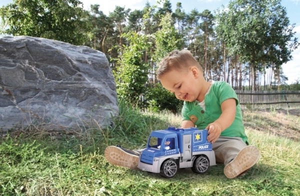 Открийте издръжлив полицейски камион, който издържа на приключения в двора и в детската стая. Благодарение на здравата конструкция и качествената пластмаса е идеален за ежедневна игра. Реалистични елементи като отворяеми врати и повдигаща се кабина стимулират въображението и развитието на фината моторика.