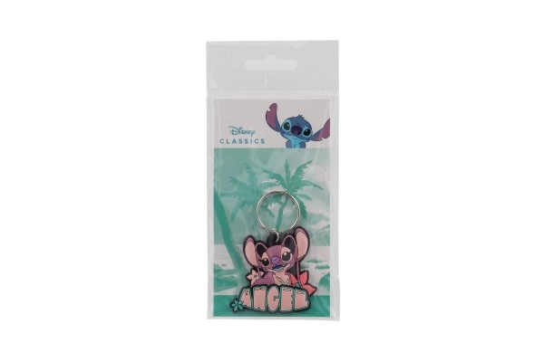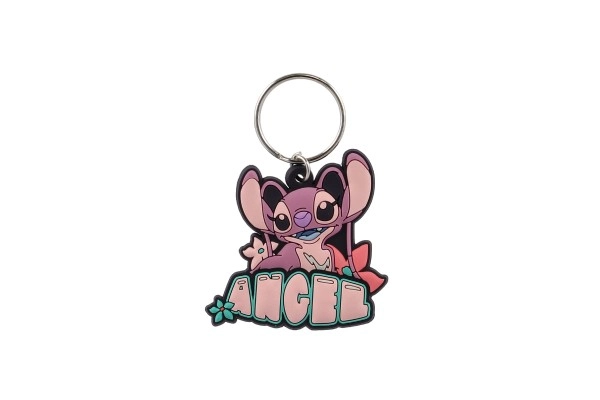 Открийте чара на розовата героиня Angel от любимия свят Lilo & Stitch. Този гумен ключодържател с надпис ANGEL е лек, издръжлив и идеален за персонализиране на вашите ежедневни аксесоари. Благодарение на компактния размер 5 см се побира удобно в джоб или чанта.