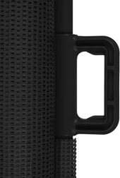 Изтеглящата се бариера работи като гъвкава щора от здравa мрежа, която позволява видимост и въздушен поток, но едновременно създава сигурна преграда. Благодарение на лесния монтаж на стената и куката от срещуположната страна, можете да я отваряте и затваряте с една ръка, а след навиване почти не заема място.