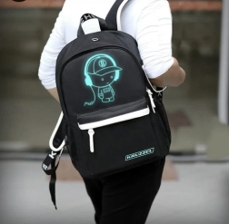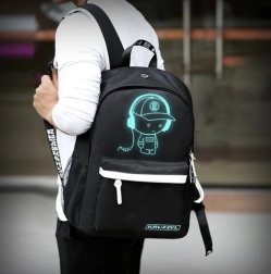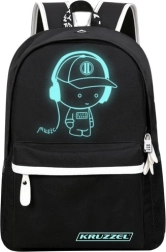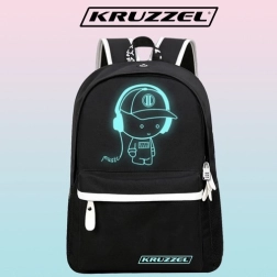 Практична градска и училищна раница KRUZZEL със светещ мотив, вграден USB порт и изход за слушалки 3,5 мм. Предлага удобна MESH подплата за по-добра вентилация, много джобове за подредена организация и обем 19 л. В комплекта има пенал, удължители за USB и 3,5 мм и кодова ключалка – идеална за училище, работа и пътуване.