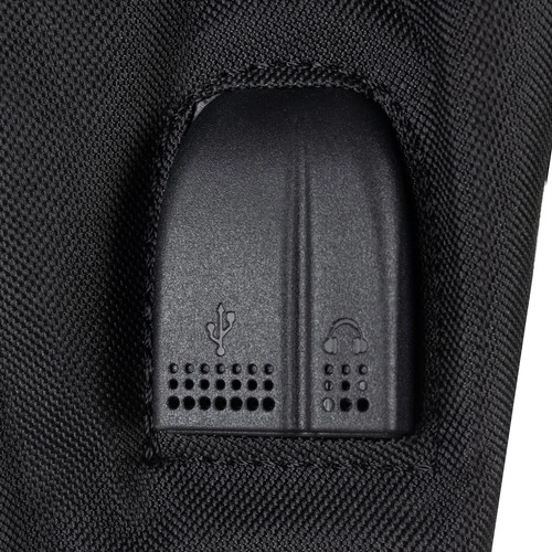 Вграденият USB порт с включен удължителен кабел позволява удобно зареждане на телефона от външна батерия вътре в раницата – без да търсите контакт.
