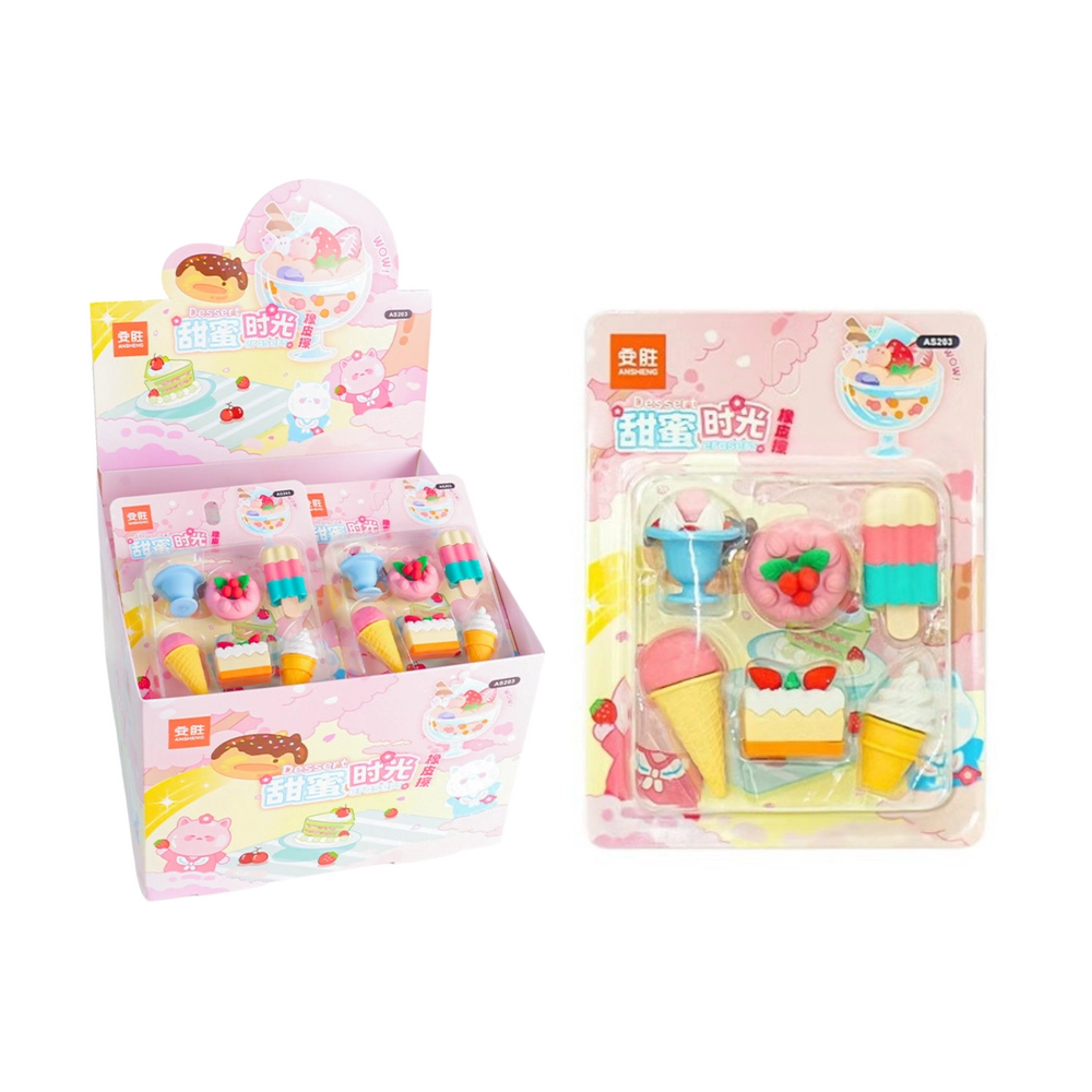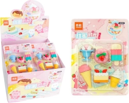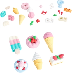 В този атрактивен комплект ще откриете гумички, наподобяващи сладолед, бисквити, десерти и мъфини – всяка е прецизно детайлизирана и сияе с ярки цветове.