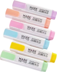 Този комплект от 6 пастелни маркера за подчертаване е перфектното решение за тези, които искат елегантно да откроят текст, без да нарушават четливостта. Деликатните пастелни цветове позволяват ясно подчертаване на съдържание в книги, тетрадки и документи. Благодарение на скосения връх можете да пишете с тънка линия или удобно да подчертавате по-големи части от текста с широк щрих.