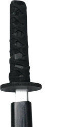 Дръжката е оплетена с материално въже, което придава реалистичен вид и по-добър захват при използване. Катаната е лека, добре балансирана и безопасна за технически упражнения, както и за сценични или декоративни цели.