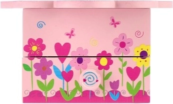 Очарователната дървена кутия за бижута в розов цвят ще зарадва всяка малка любителка на приказки. Капакът с цветна форма крие огледалце, а при отваряне се включва музикален механизъм, който превръща всяко пременяне в магичен ритуал. Вътрешното разпределение с отделения и долното чекмедже помагат да се поддържа ред в пръстенчета, гривни, мъниста и дребни съкровища.
