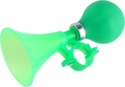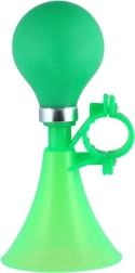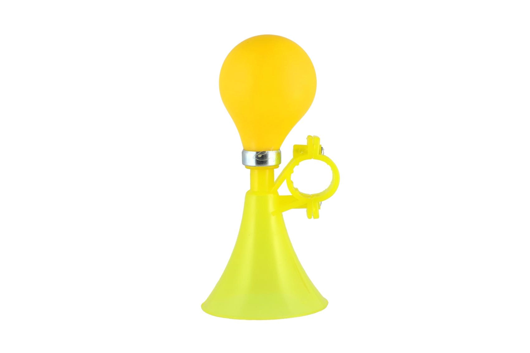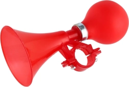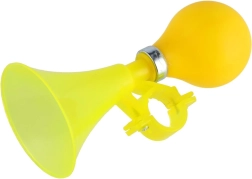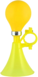 При натискане на гумената балонка клаксонът издава отчетлив сигнал, който предупреждава околните и повишава видимостта и безопасността по време на каране. Идеален аксесоар за площадки, велоалеи и паркове.