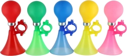 Практичен клаксон за велосипед с класическа гумена балонка гарантира, че детето ви ще бъде добре чуто на пътя. Благодарение на включената скоба лесно се монтира на повечето детски кормила без специални инструменти. Лекият и цветен дизайн придава игрив вид на велосипеда и тротинетката.