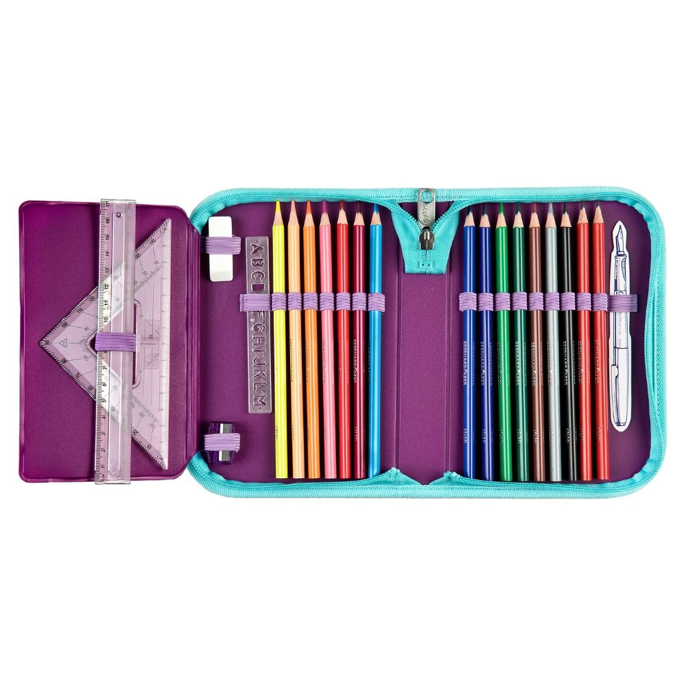 Несесерът е оборудван с цип, благодарение на който съдържанието е сигурно съхранено и лесно достъпно. Освен практичния дизайн може да се похвали и с екологични елементи, тъй като цветните моливи и графитните моливи са изработени на 52% от рециклиран материал. Този продукт е не само практичен, но и щадящ околната среда.