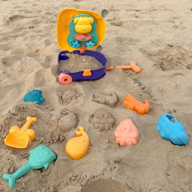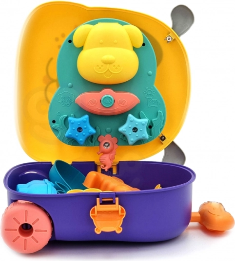 Това преносимо куфарче се превръща в малко водно пясъчник, което забавлява децата у дома, в градината и на плажа. Благодарение на богатите аксесоари децата ще се радват на моделиране с пясък и едновременно на откриване на водни ефекти. Играчката подпомага фината моторика, креативността и сетивното възприятие.