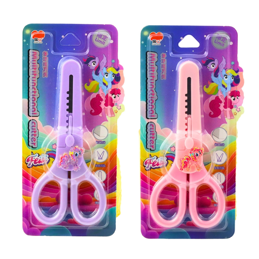 Ножиците с предпазно капаче и декоративен мотив конче са идеални за най-малките потребители. Имат ергономични дръжки, приспособени за малки ръчички, а декоративното конче с блестящи елементи им придава уникален вид. Подходящи са както у дома, така и в училище за изрязване на хартия, пластмаса и креативни проекти. Интегрираното предпазно капаче за острието предотвратява случайни наранявания и позволява безопасно съхранение в калъф, раница или чекмедже.