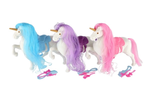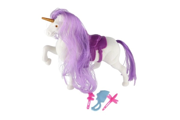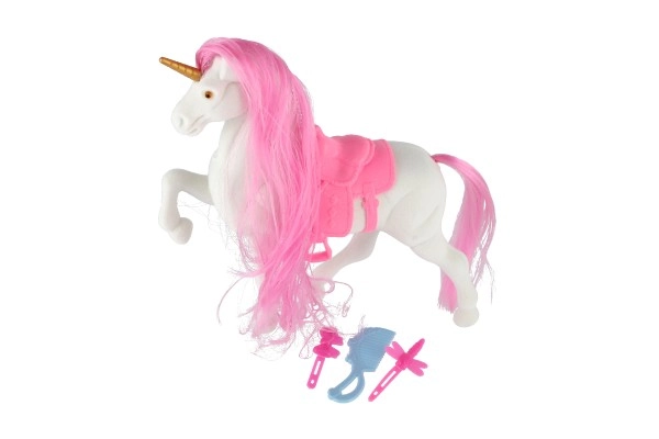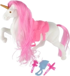 Красив еднорог със среслива грива е идеалният спътник за всяко приключение. В комплекта са включени седло и стилни аксесоари, които гарантират часове забавление за вашето дете.