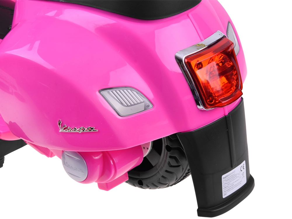 Малката VESPA е създадена за най-малките, за да се радват на първите си разходки в пълен комфорт и безопасност. Благодарение на компактните размери е подходяща както за интериор, така и за външни алеи и площадки. Помощните стабилизиращи колелца осигуряват увереност и баланс при каране, а предният фар и светещите елементи допринасят за атрактивна визия.