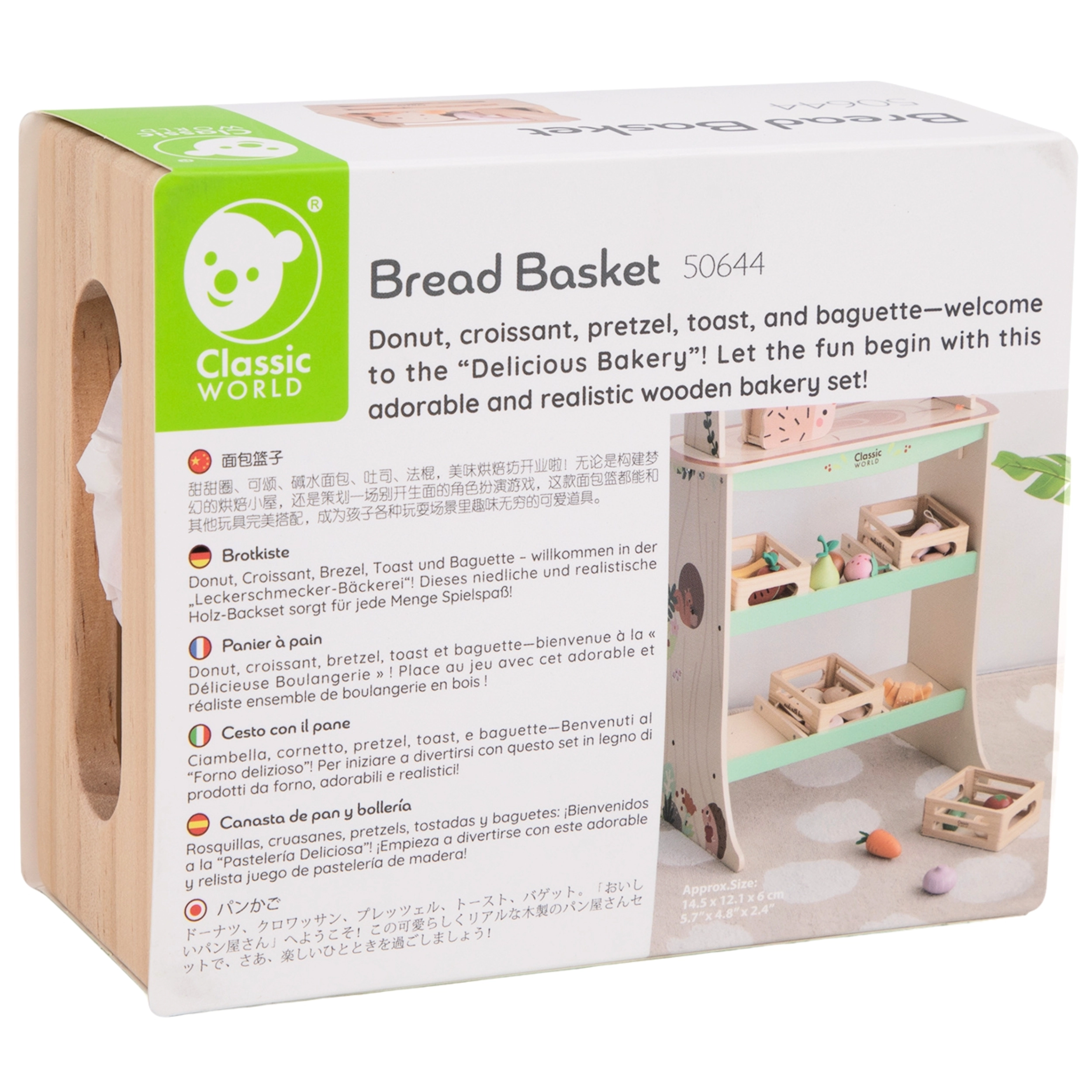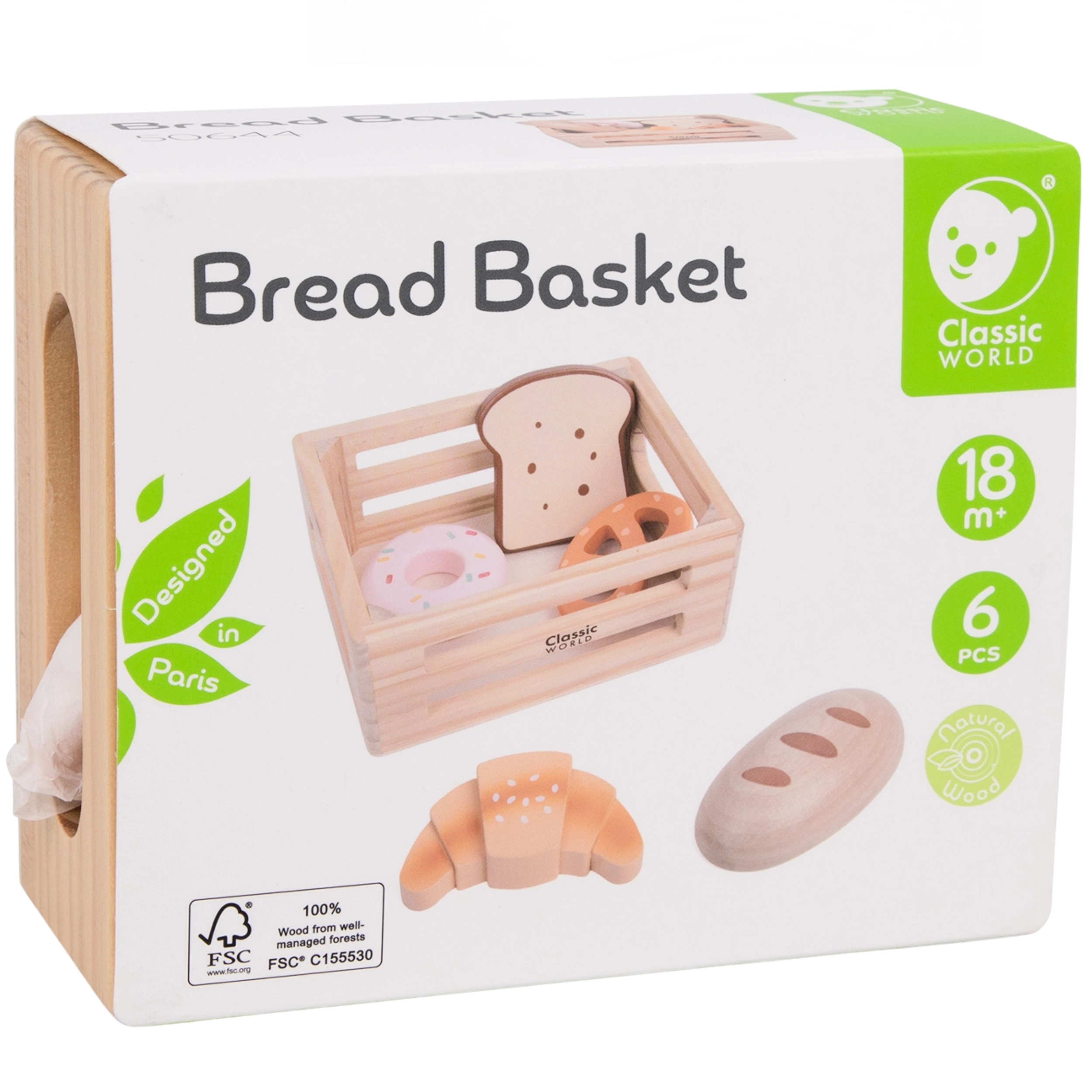 Открийте дървената пекарска кошничка от марката Classic World, която е идеална за малки любители на креативните игри в кухнята, магазина или пекарната. Висококачествените дървени елементи, имитиращи различни видове печива, развиват въображението и социалните умения на децата.