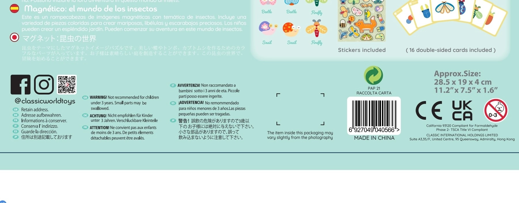 Магнитният пъзел с животни от CLASSIC WORLD е забавен и образователен пъзел комплект, който помага на децата да откриват разнообразието на животните на ливадата и да развиват своите креативни умения. Комплектът подпомага развитието на въображението, моториката и наблюдателността на вашето дете.
